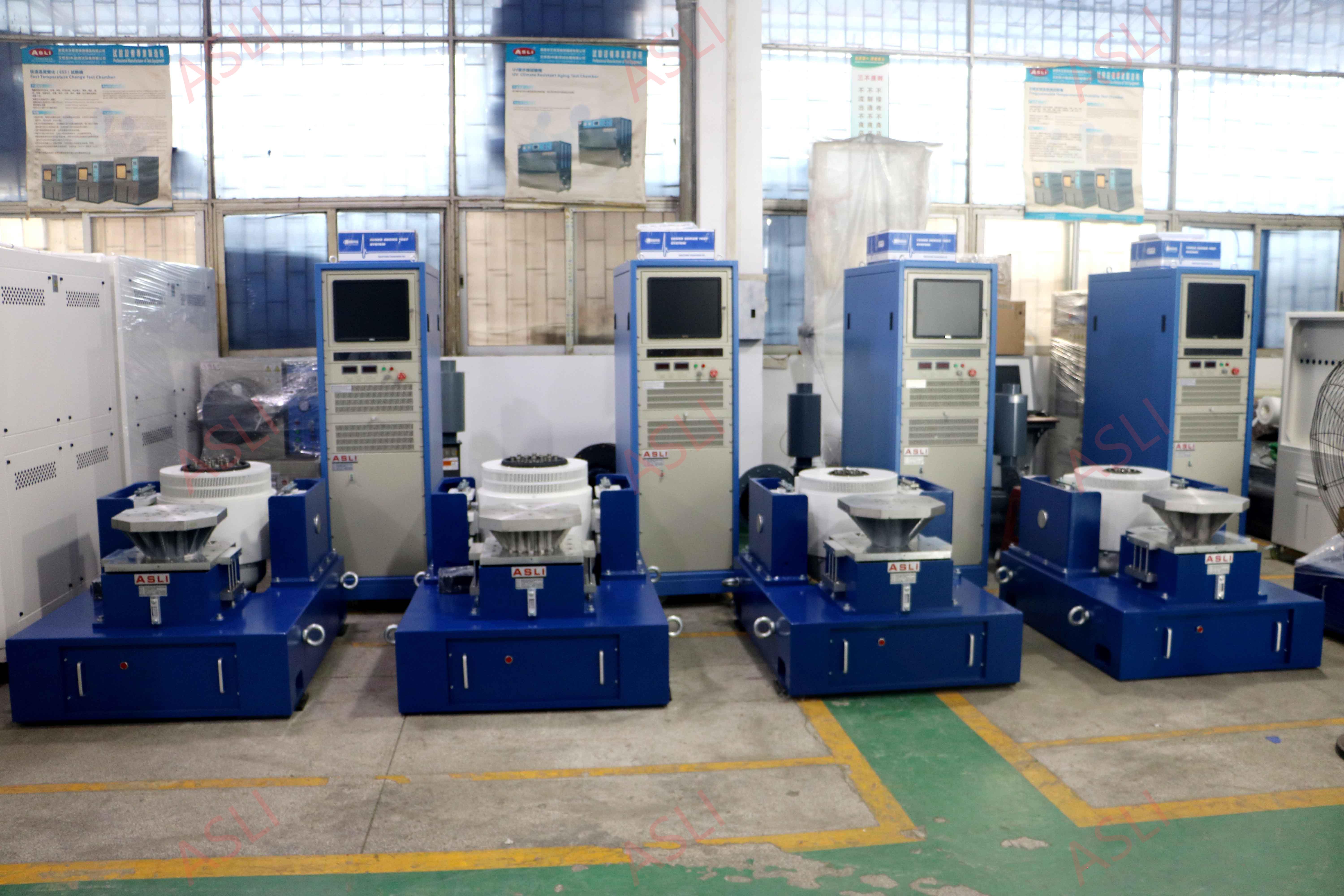 This automatic bearing vibration testing machine is a mechanical measuring instrument and laboratory shaker table primarily used for product vibration and shock environmental testing, environmental stress screening tests, and reliability tests. It serves industries including aerospace, communications, electronics, electrical, and home appliances. The platform meets various test specifications such as IEC, MIL-STD, JIS, and ASTM.